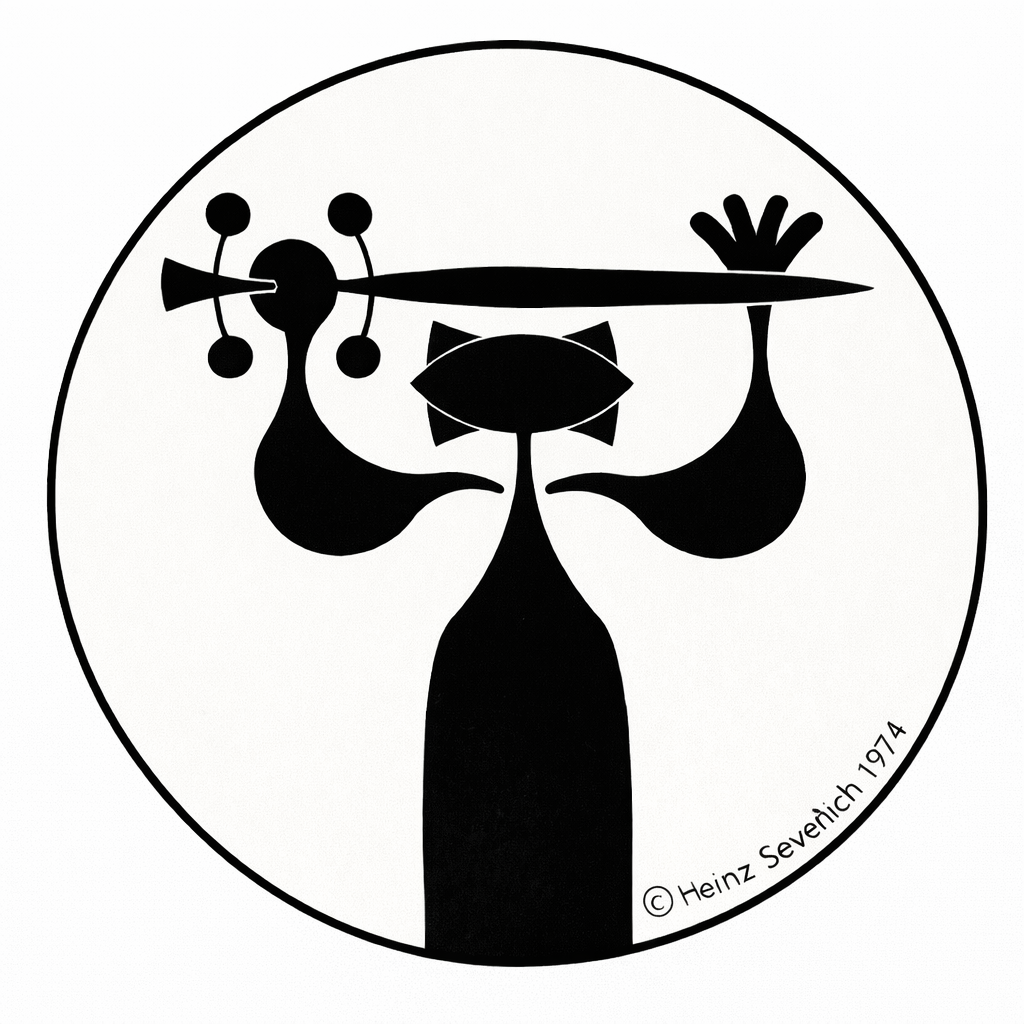The logo draws on key motifs from the artistic work of Heinz Sevenich: reduction, balance, and inner tension. The abstracted figure represents the human presence in space—both ordering and searching. Clear lines meet organic forms; symmetry is offset by subtle shifts.